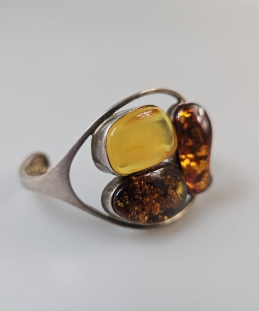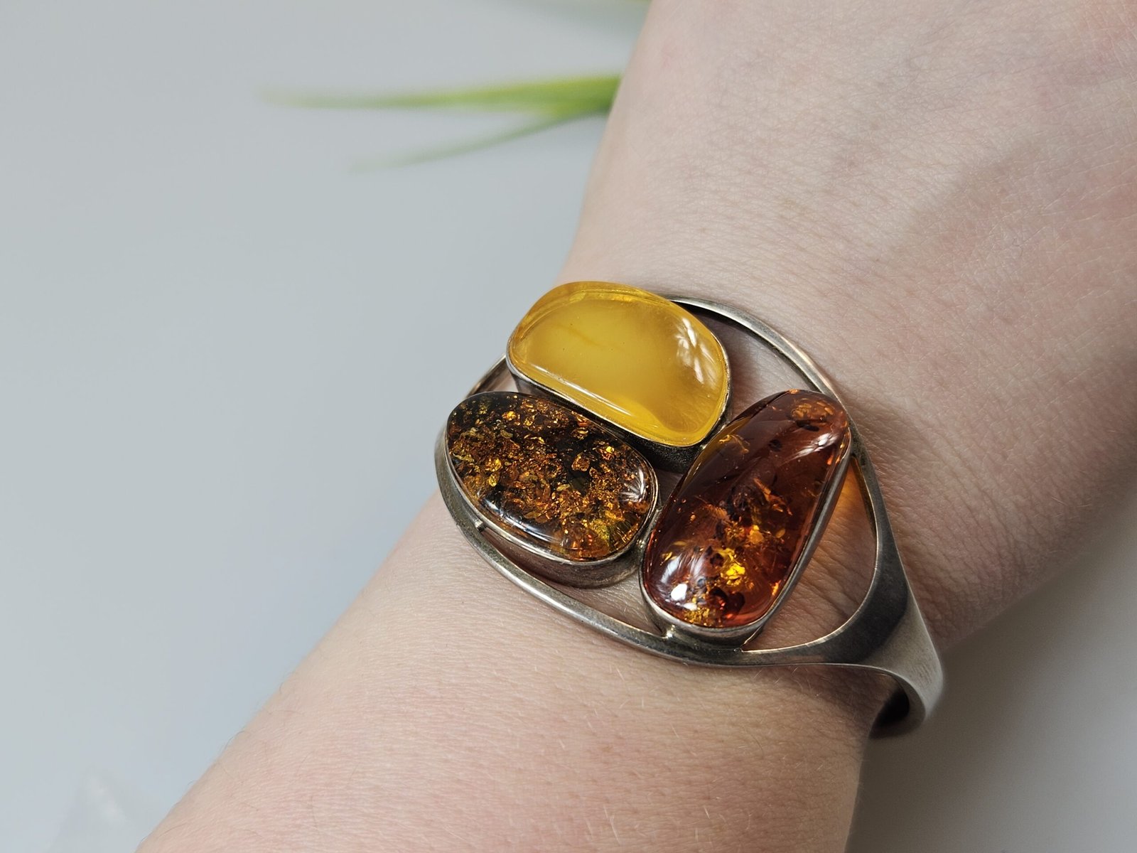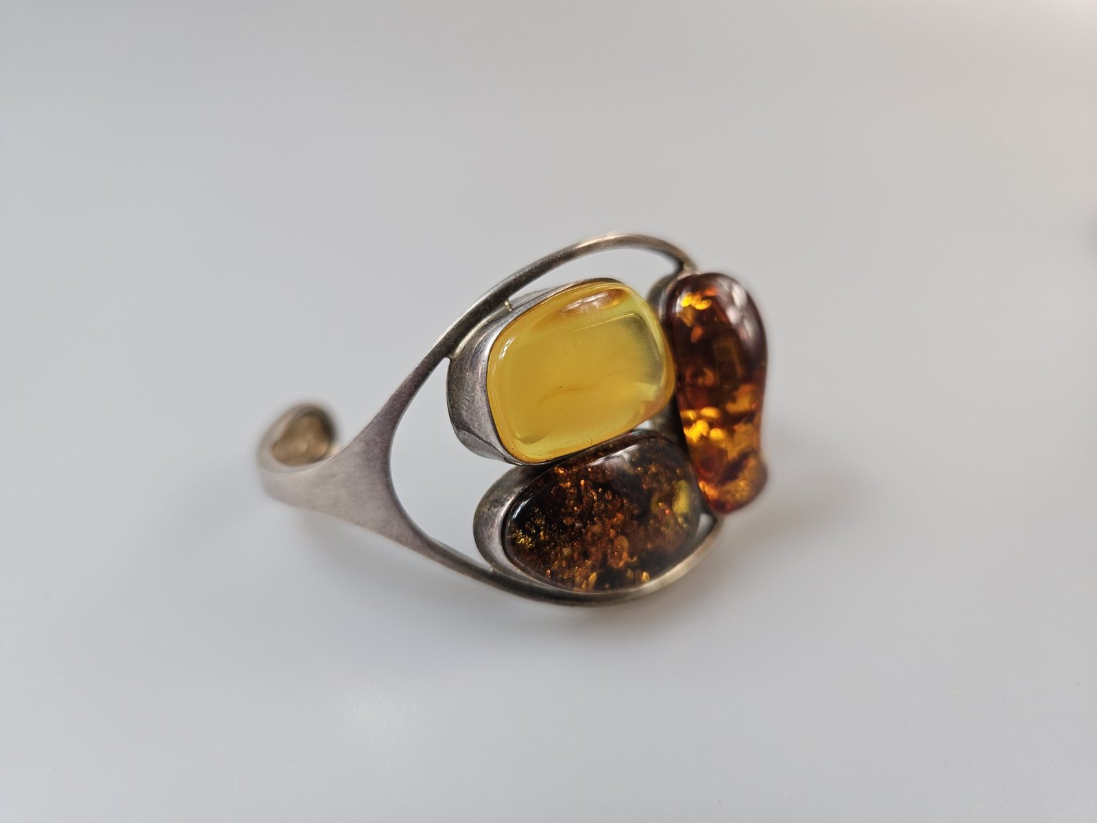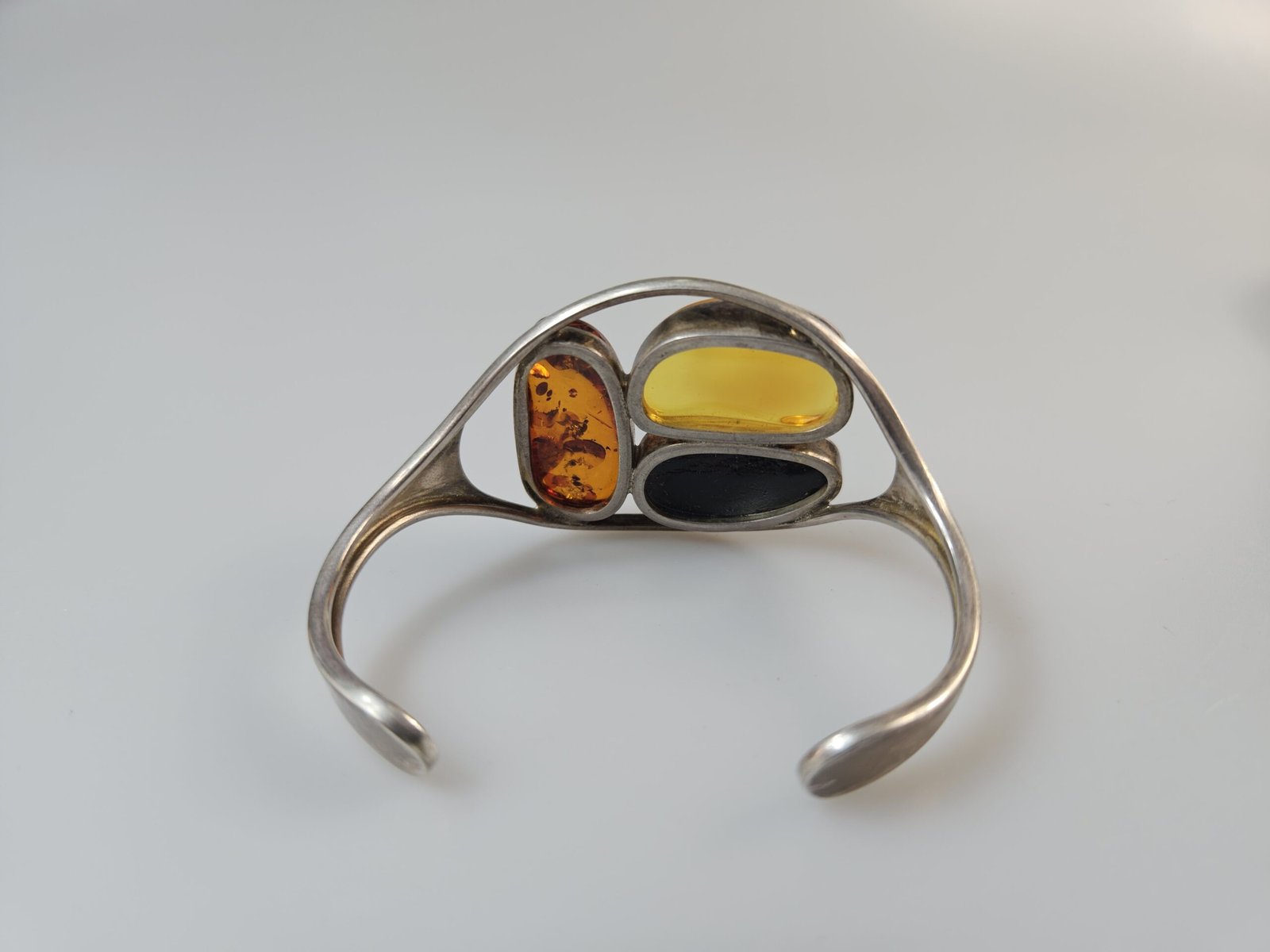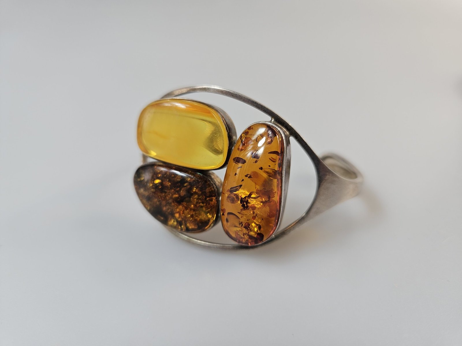 Sidabrinė apyrankė su gintaru Unikali dovana jai. Sidabrinė apyrankė su detalėmis ir natūraliu Baltijos gintaru. Reguliuojamas dydis. Sidabras 925. Gintaro dydis 2,5 cm. Svoris 26,926 gr