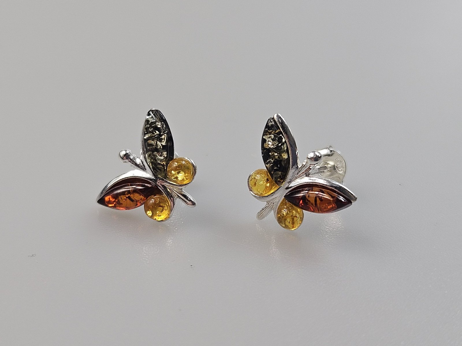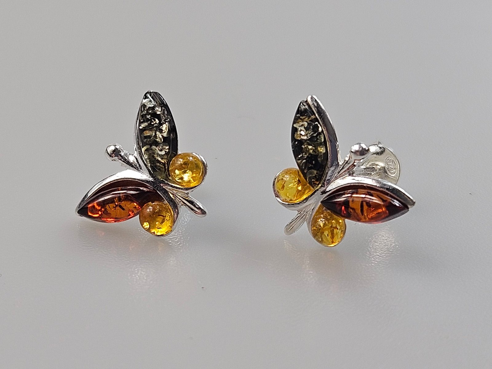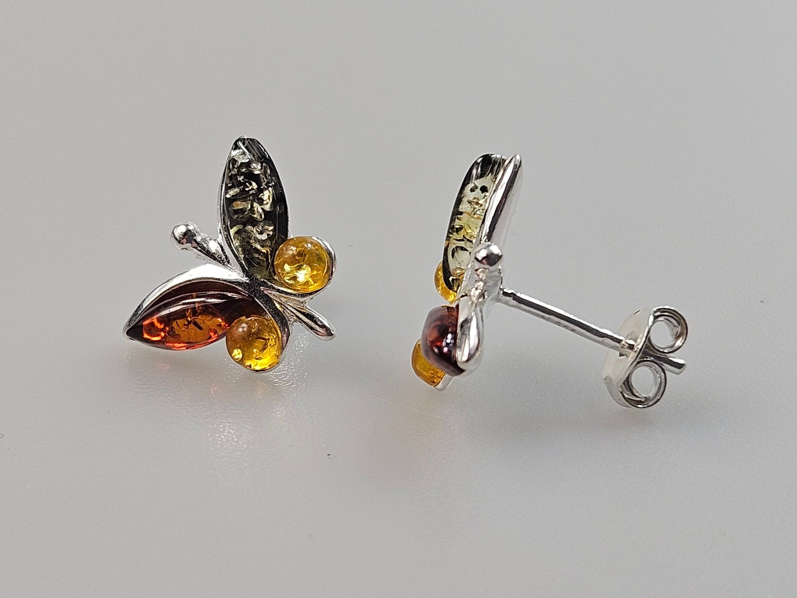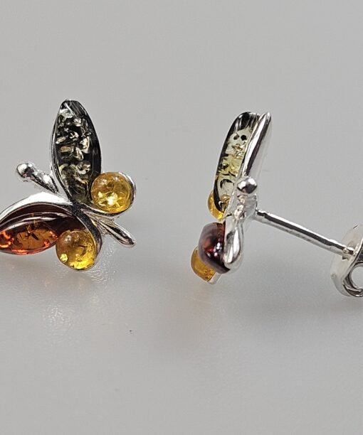 Gemstone stud in earrings. All parts sterling silver 925 and Baltic Amber.