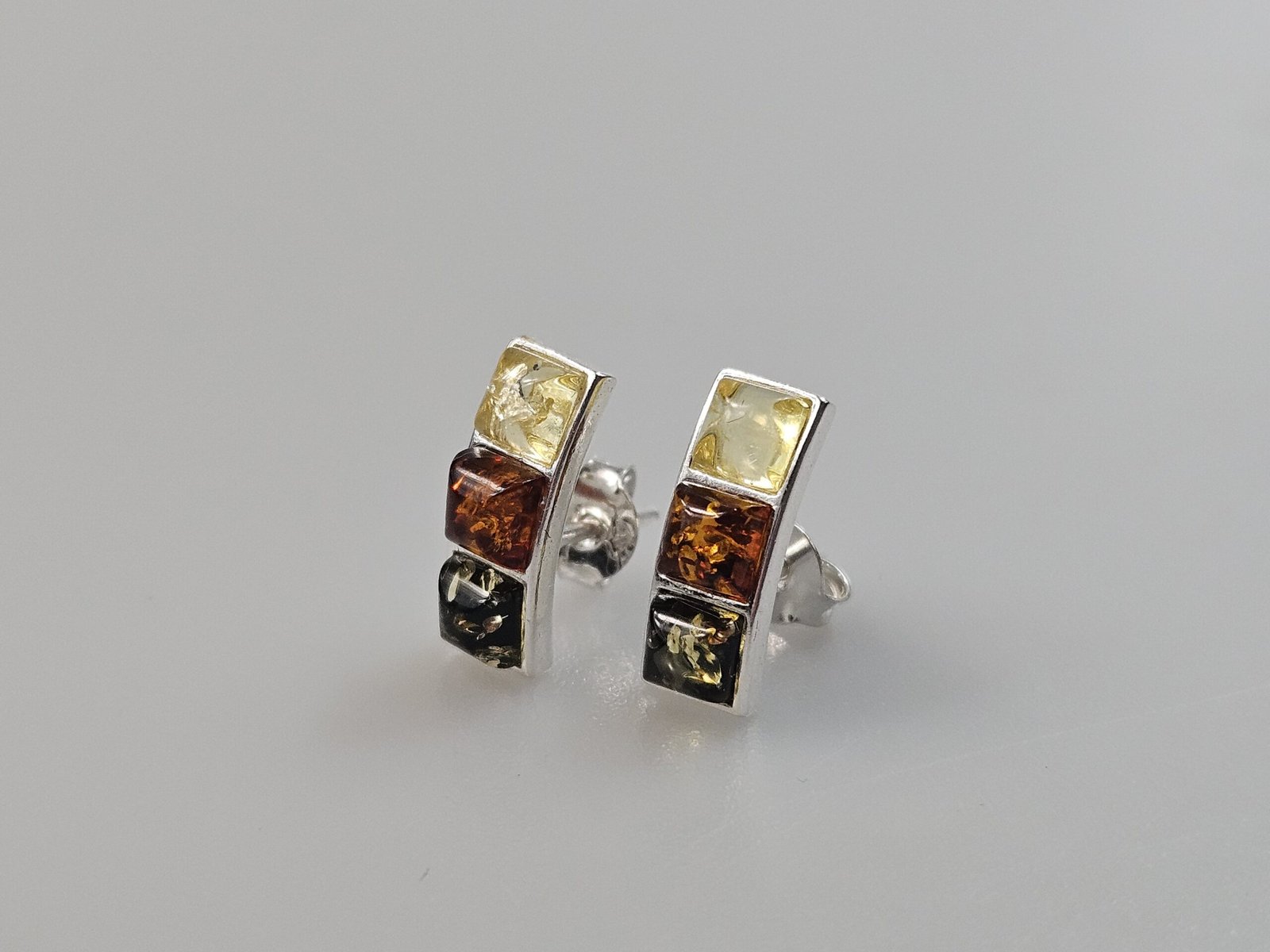 Small Sterling Silver 925 stud earrings made of genuine Baltic amber. All parts – Sterling silver 925.