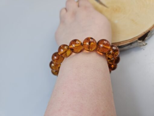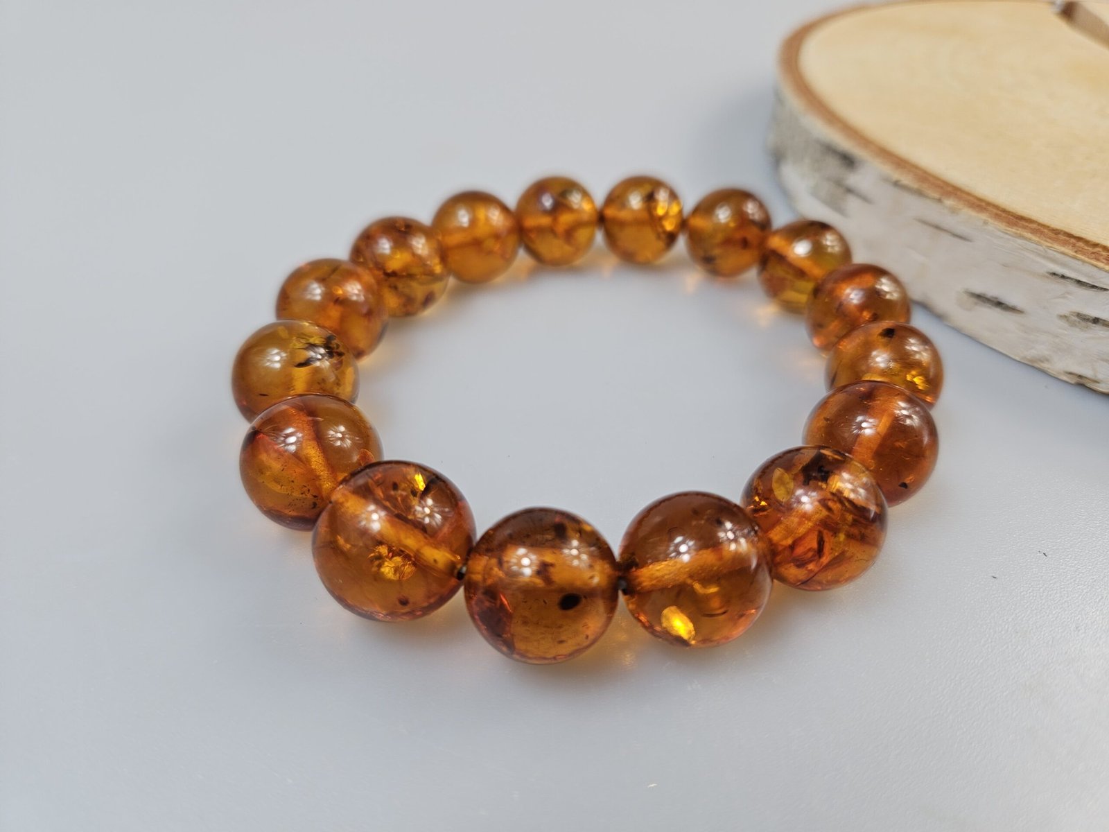 orange brownBaltic Amber bracelet, Round unique beaded bracelet, gemstone crystal bracelet. Will be just a stunning gif for her or him. Unisex. Length – elastic. Will fit to even a bit biger wrist. Very elegant and royal gemstone bracelet. Weight about 28.58 gr. Bead size about 15 mm. Length about 19 but elastic