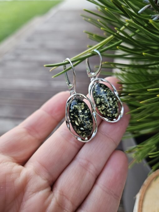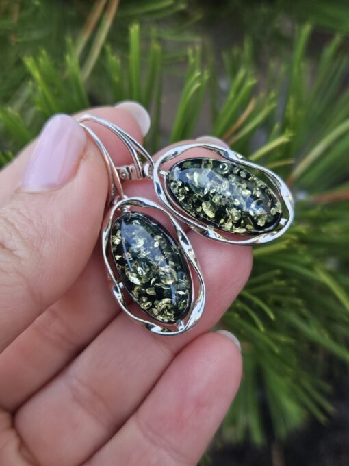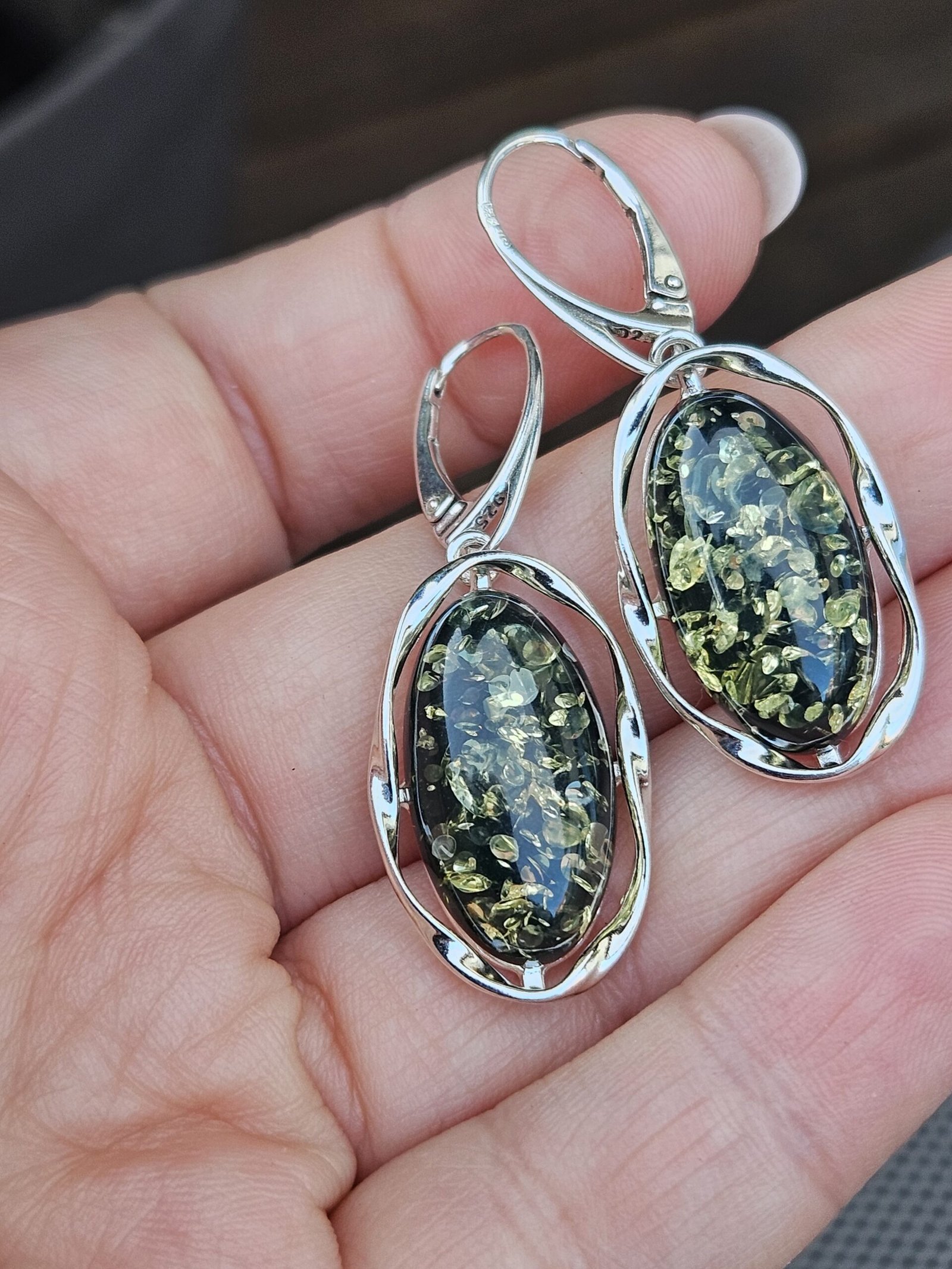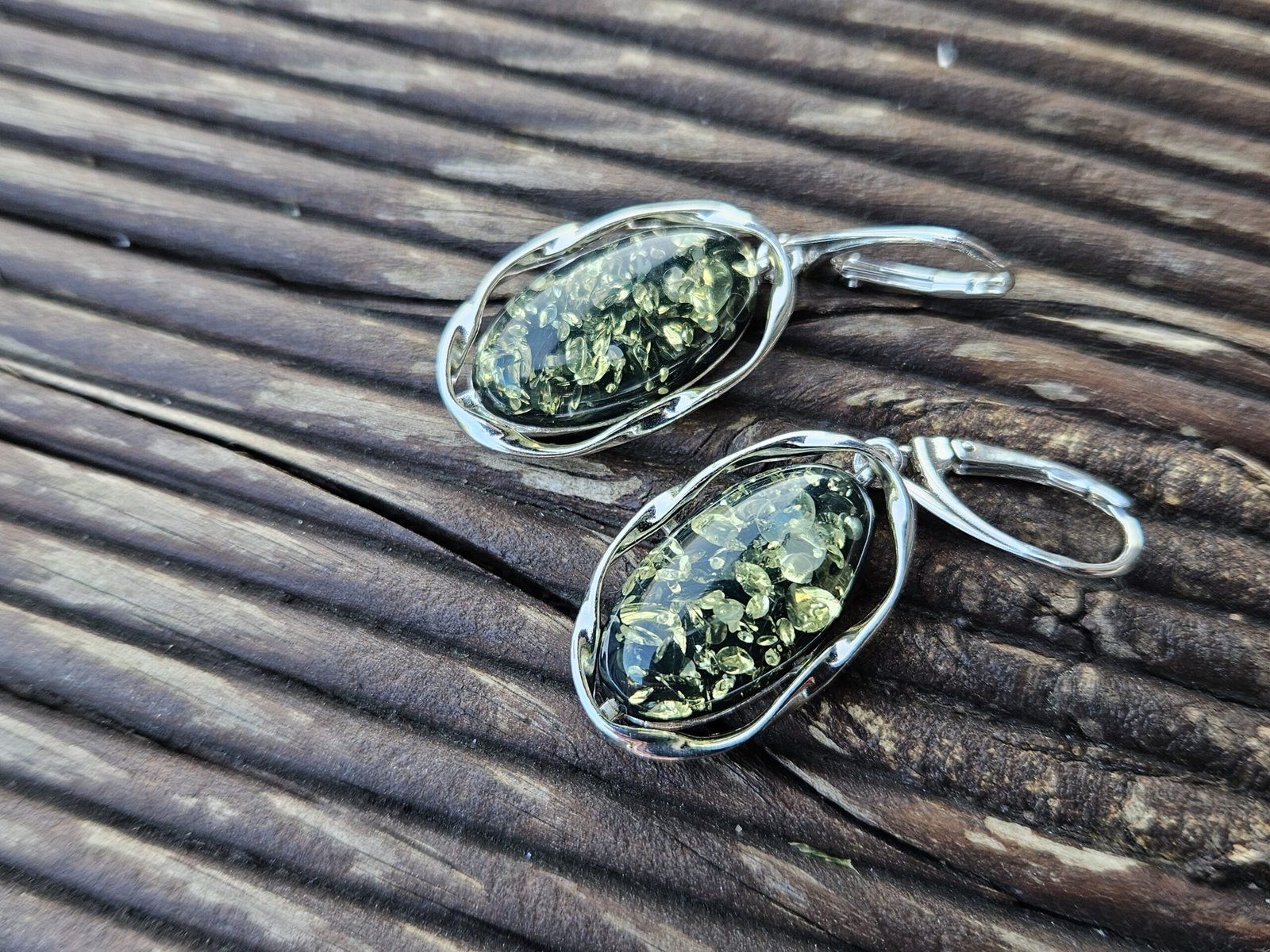 Green silver earrings Silver jewelery Silver – 925. Massive Length 4,3 cm.