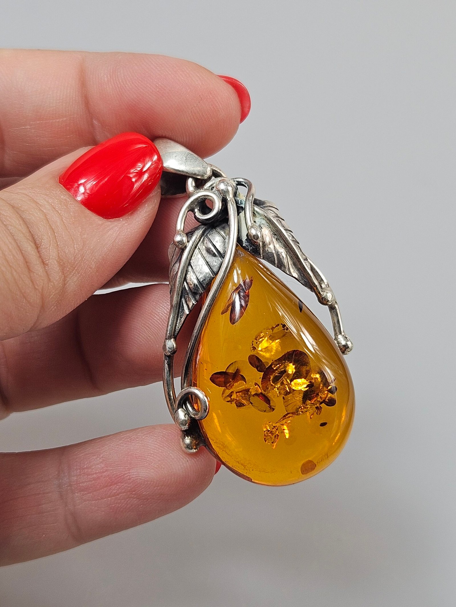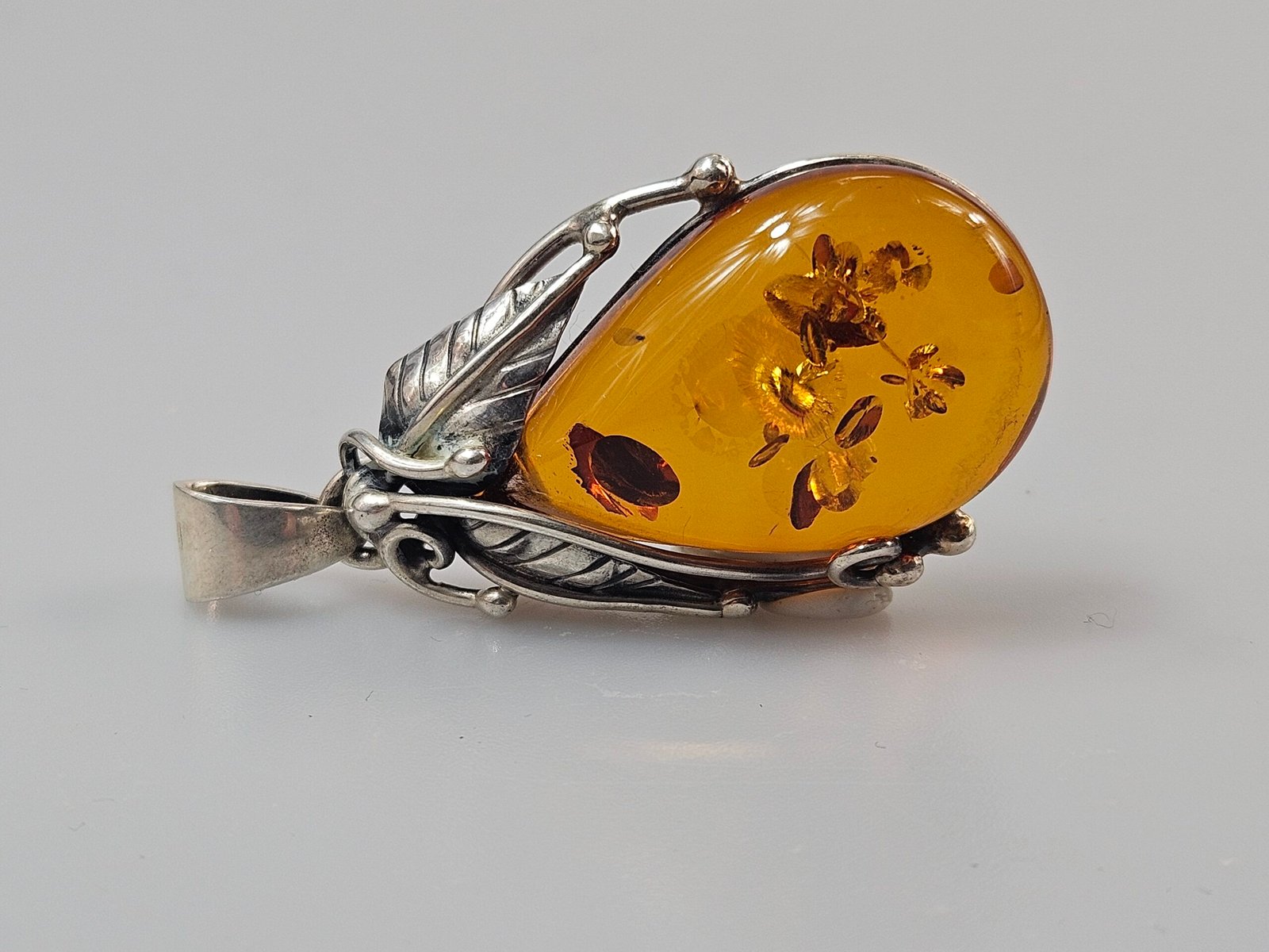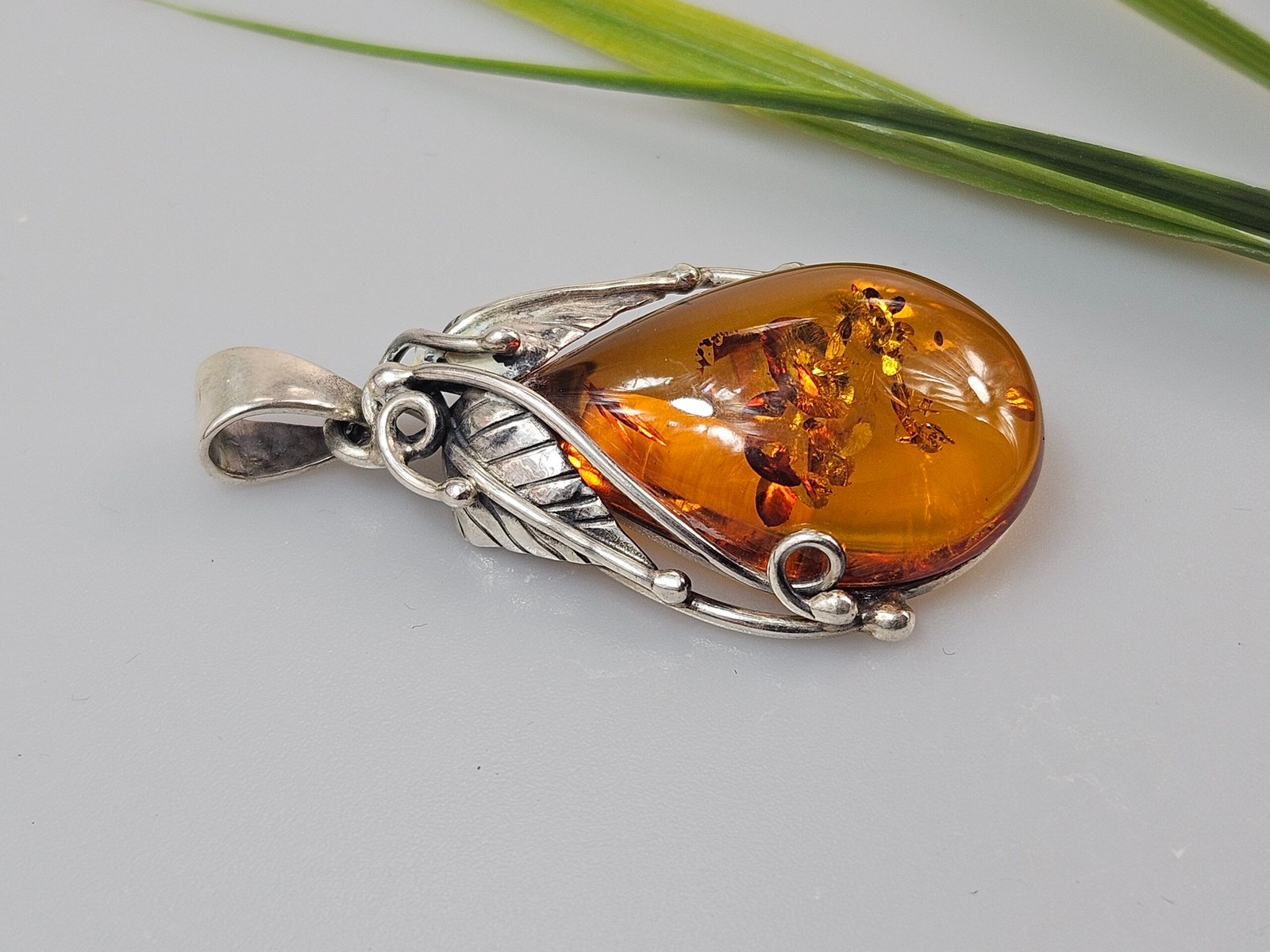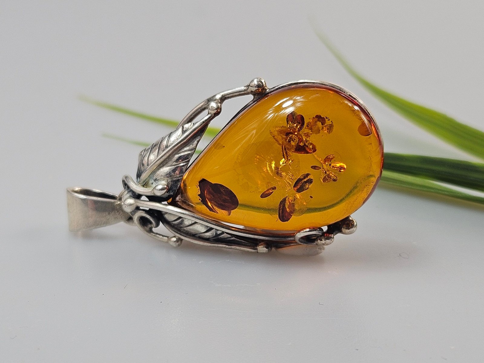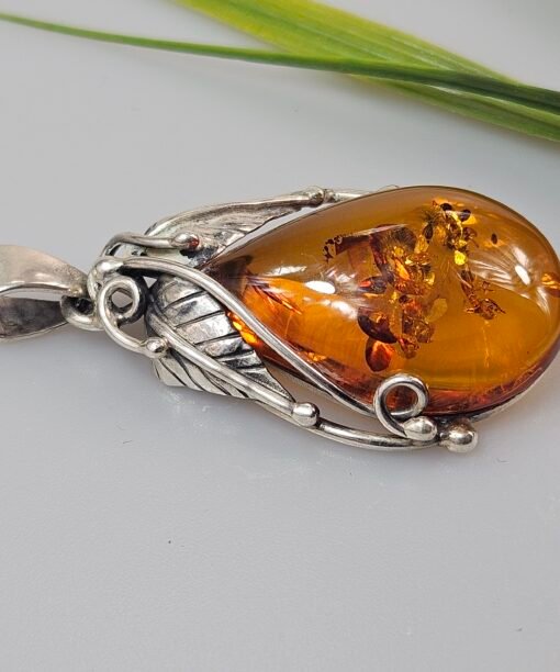 Sterling silver necklace with green amber 5 x 2,3 cm,14,31 gr.