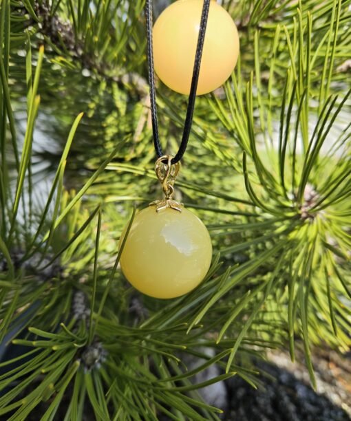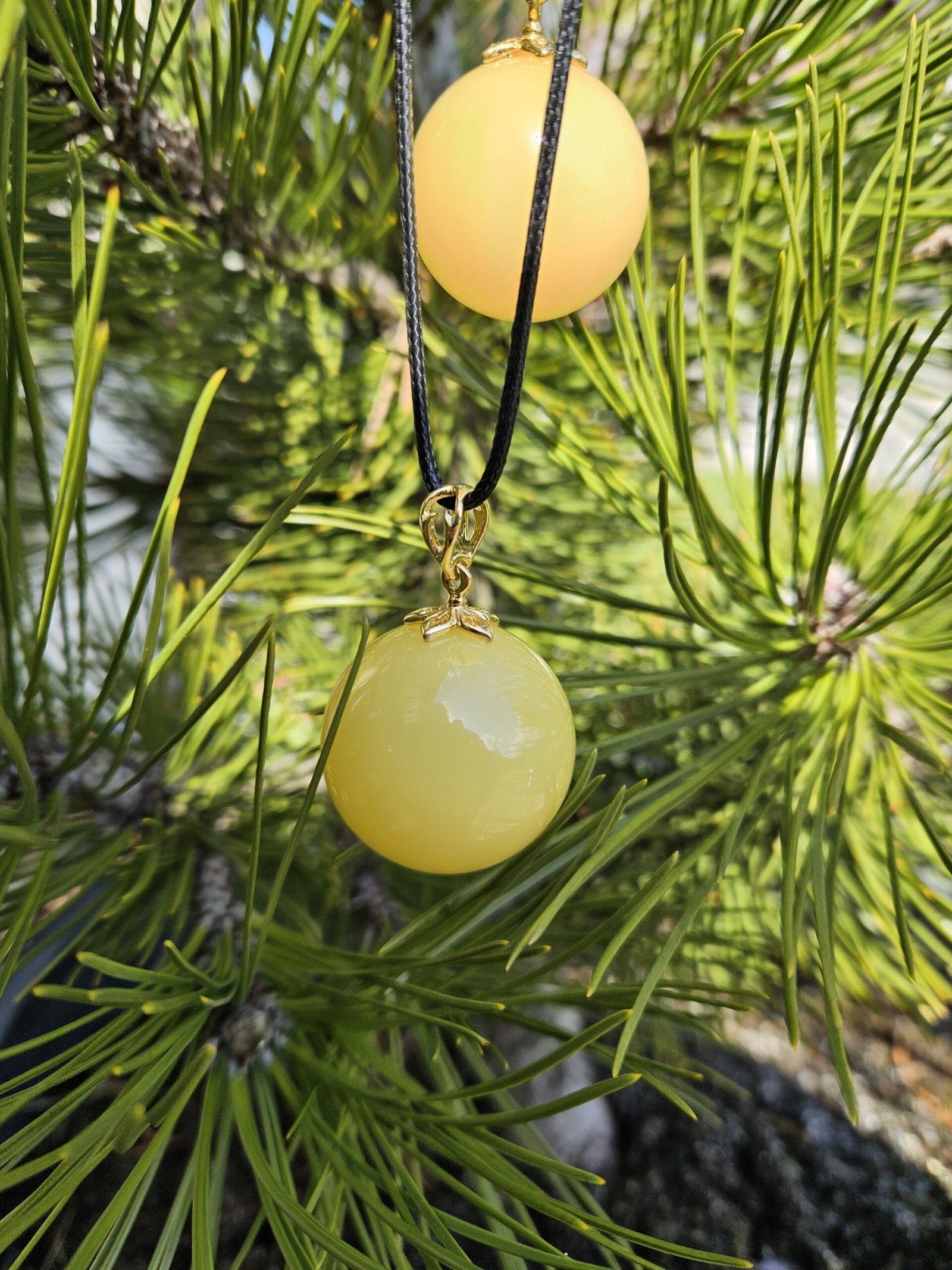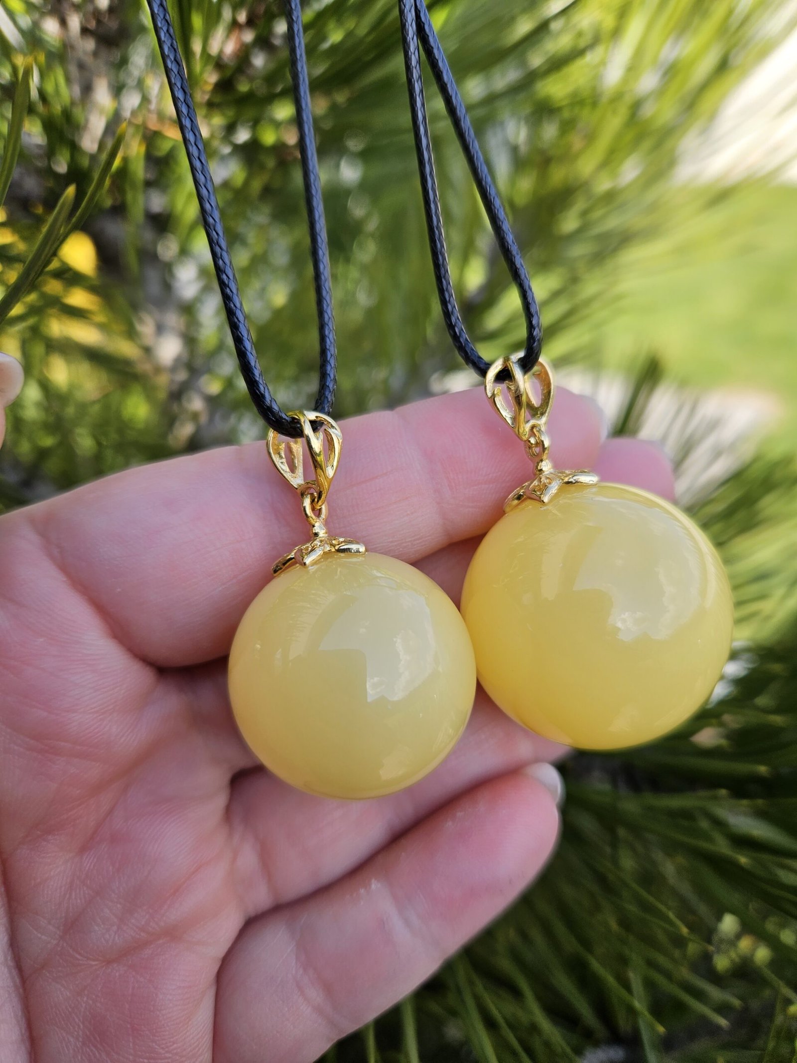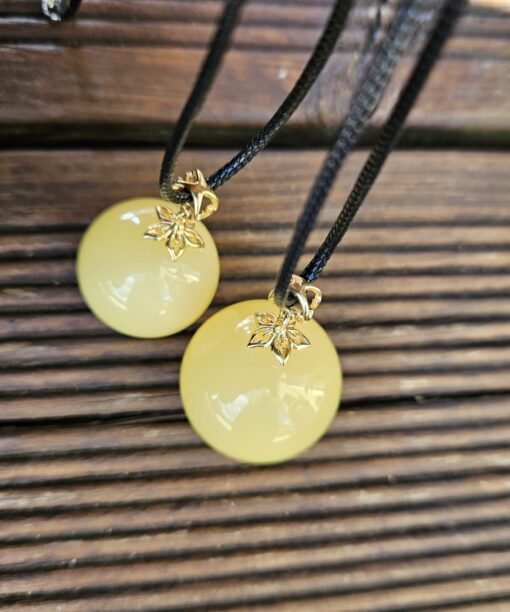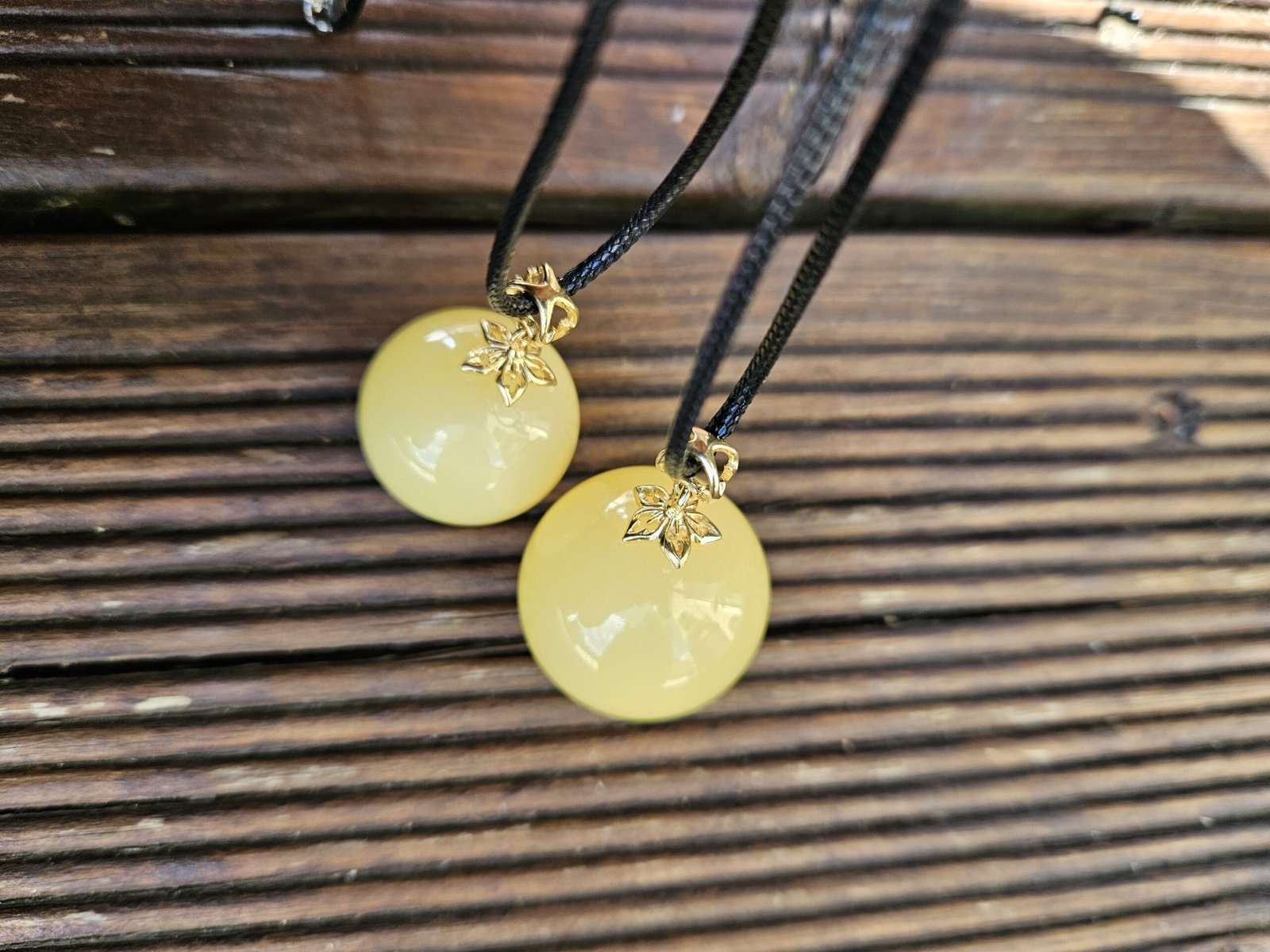 White amber pendant necklave Round beaded White amber pendant necklave Round beaded