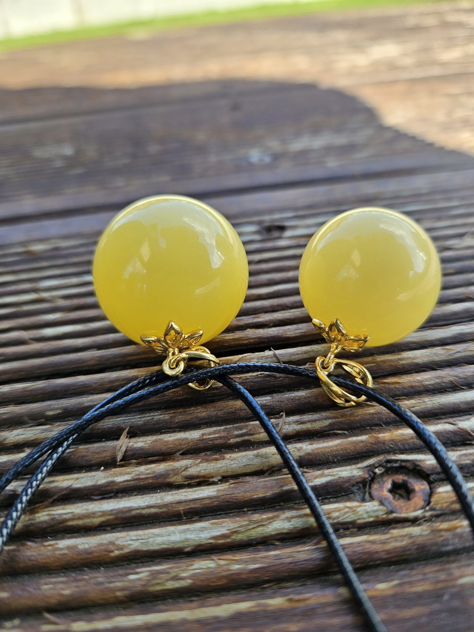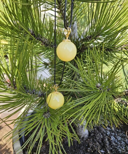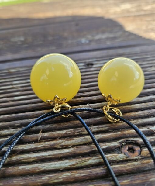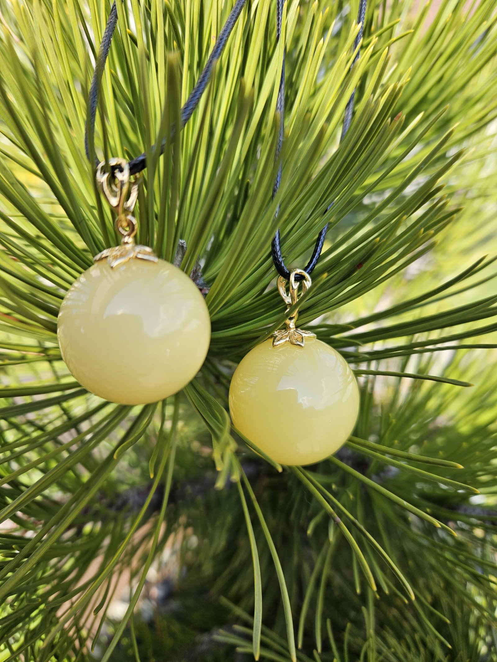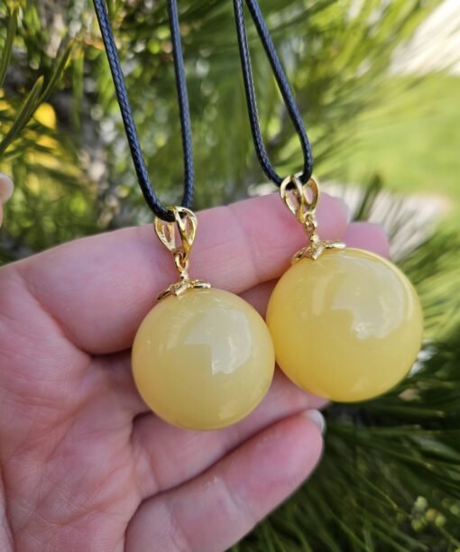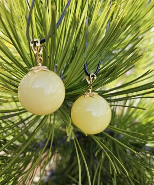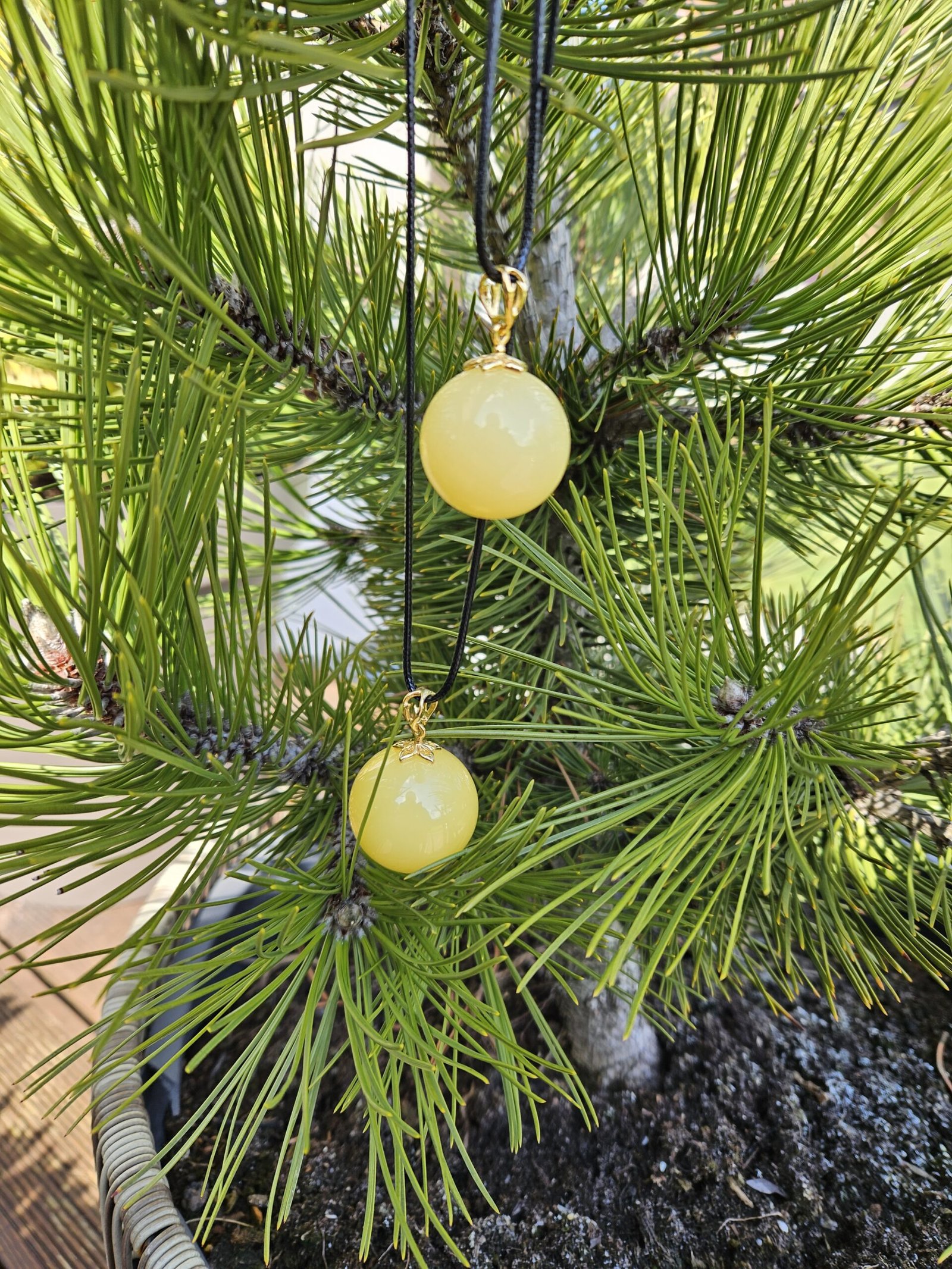 White amber pendant necklave Round beaded White amber pendant necklave Round beaded