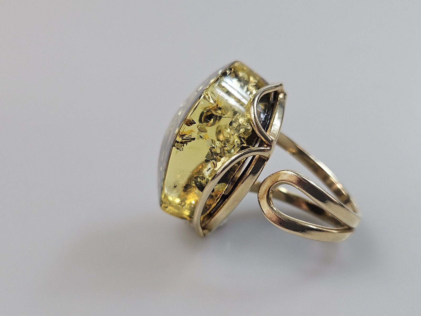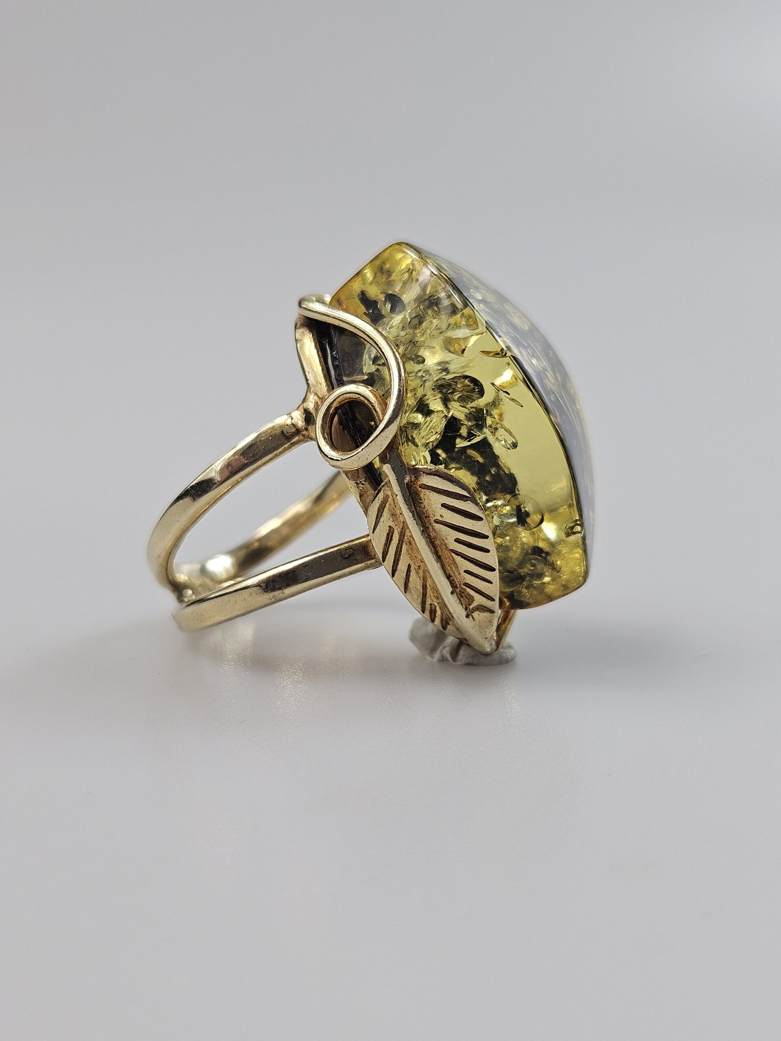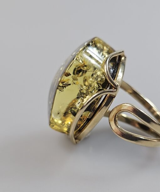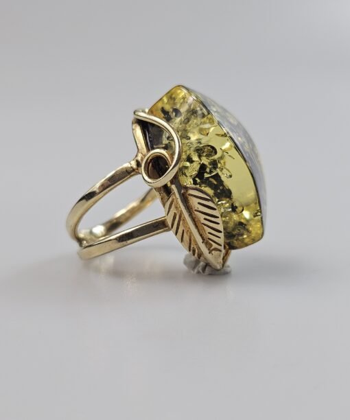 Žalio gintaro žiedas Auksinis žiedas Dovana Jai. Akmuo 2,5 cm