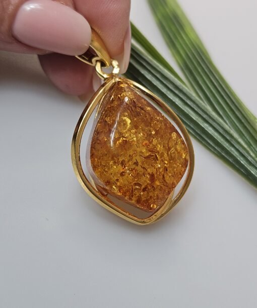 Gold plated green Amber necklace pendant