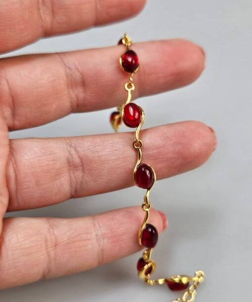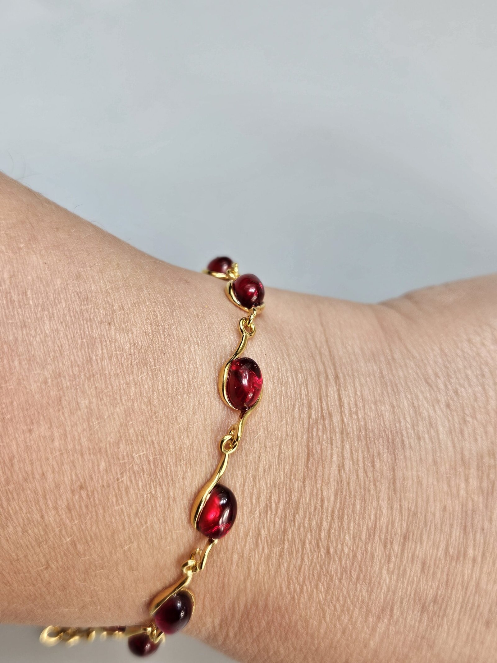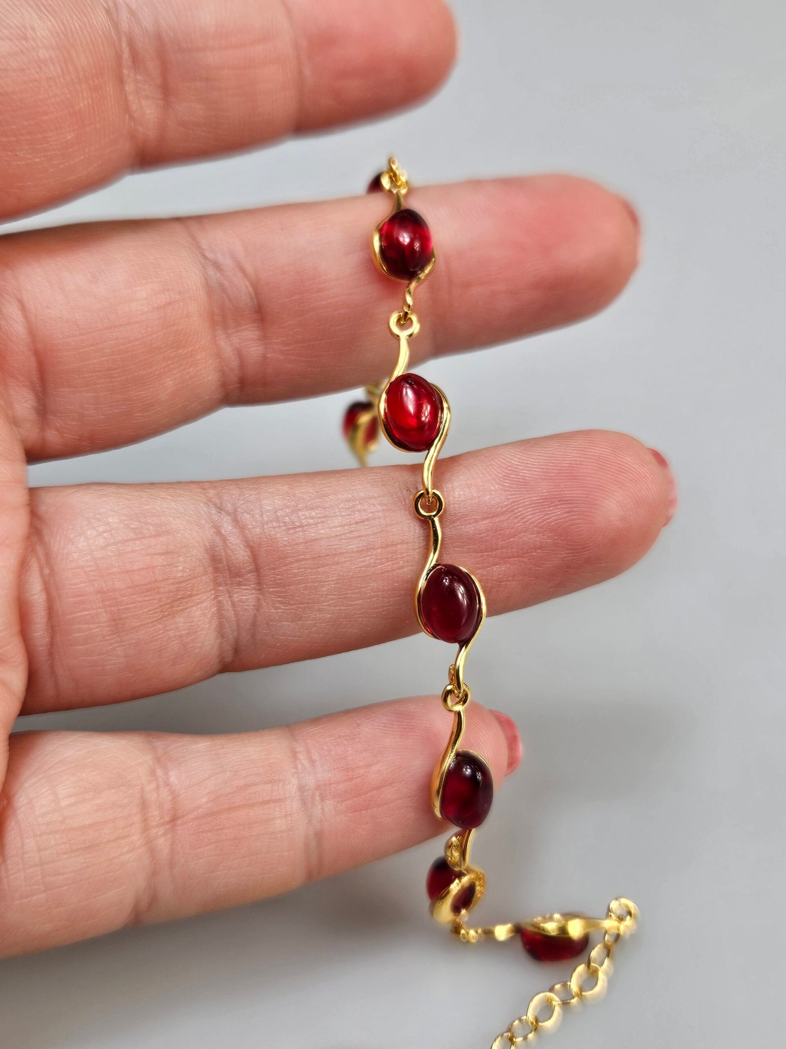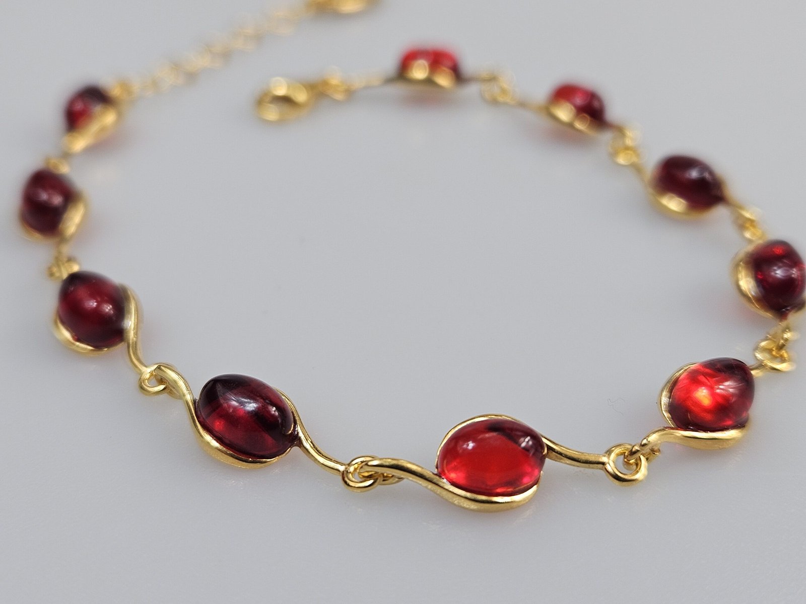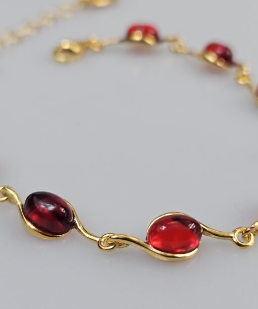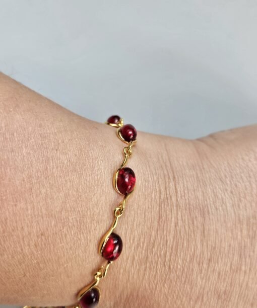 Raudono gintaro apyrankė, auksas ir gintaras. Reguliuojamas ilgis. Paaukuostas sidabras 925. Tikras gintaras.