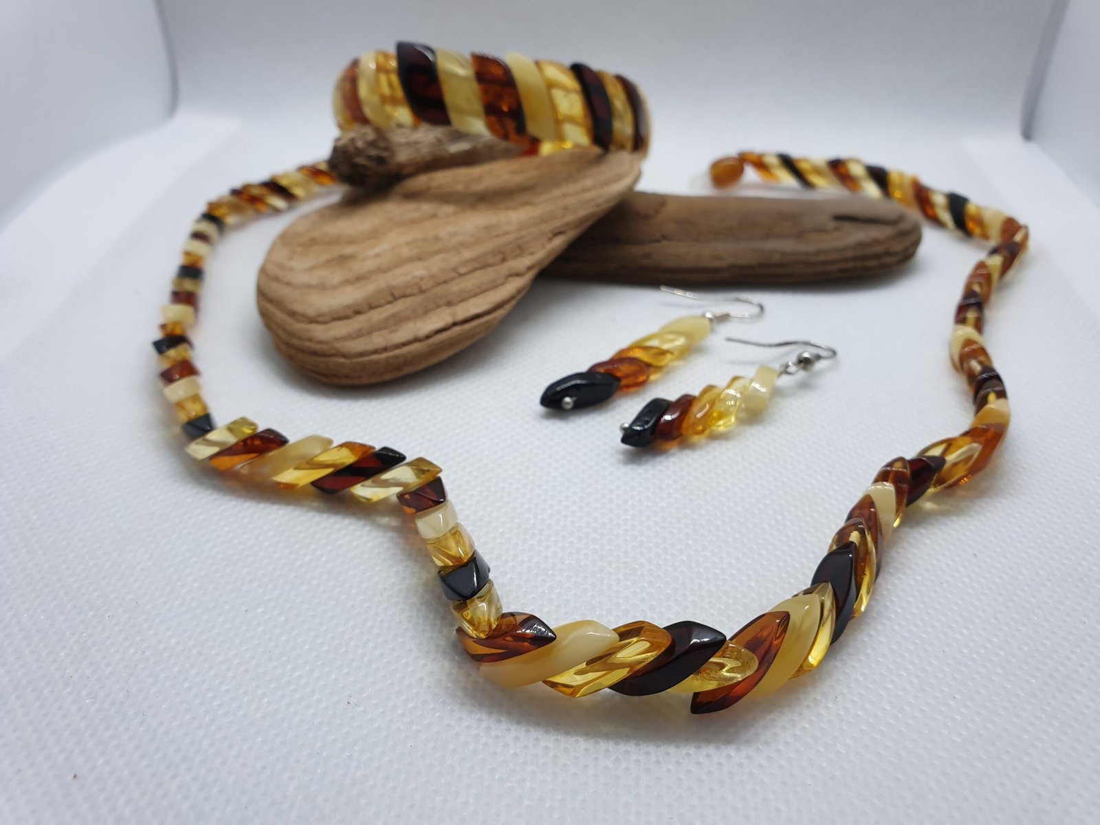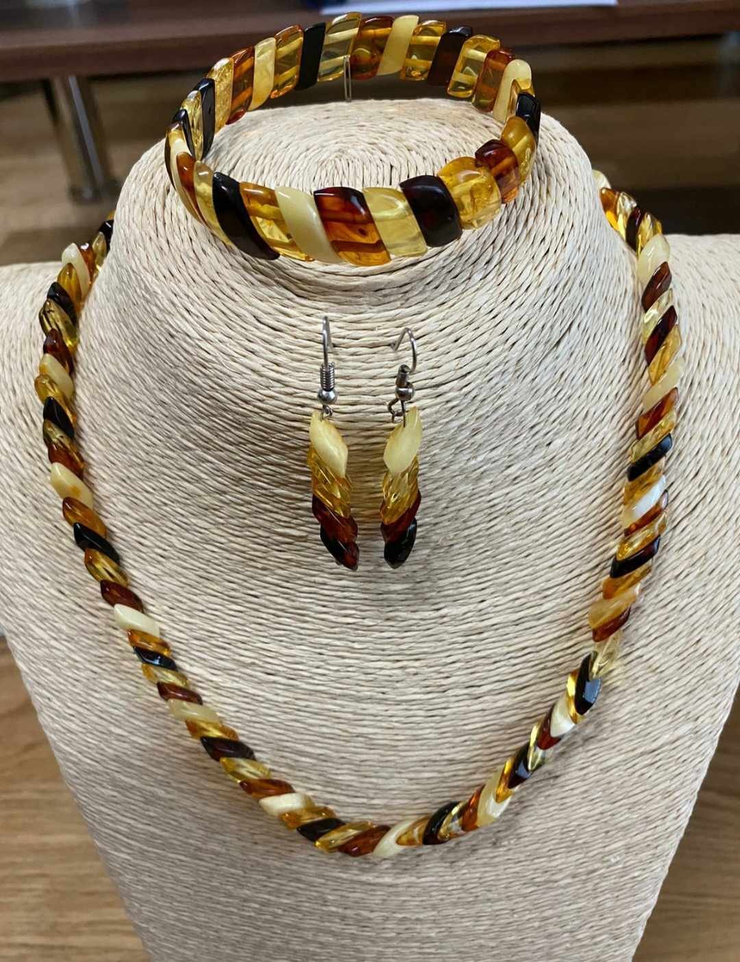 Papuošalų rinkinys iš gintaro. Gintariniai karoliai apyrankė auskarai
