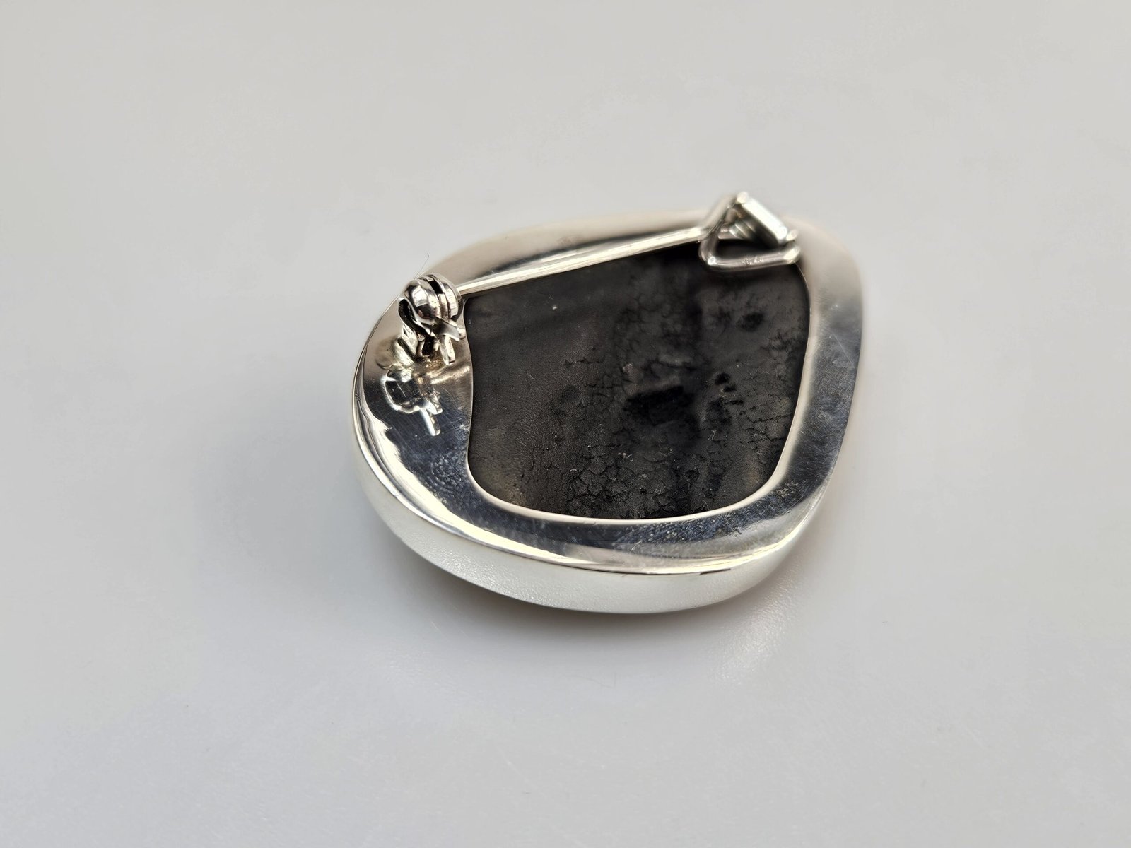 Sagė gintarinė sidabrinė. Žalias gintaras. Ilgis 3 x 4,5 cm svoris 14,50gr. Sagė gintarine sidabrinė dovana Jai Rankų darbo sagė.