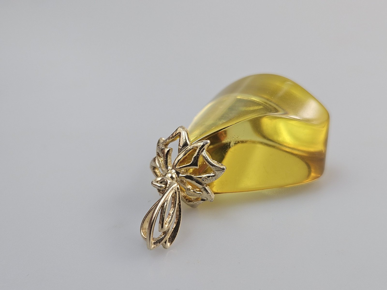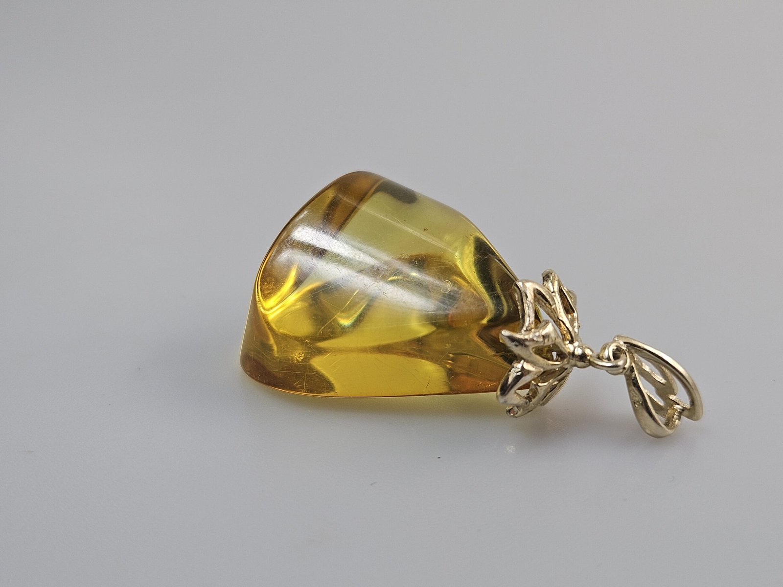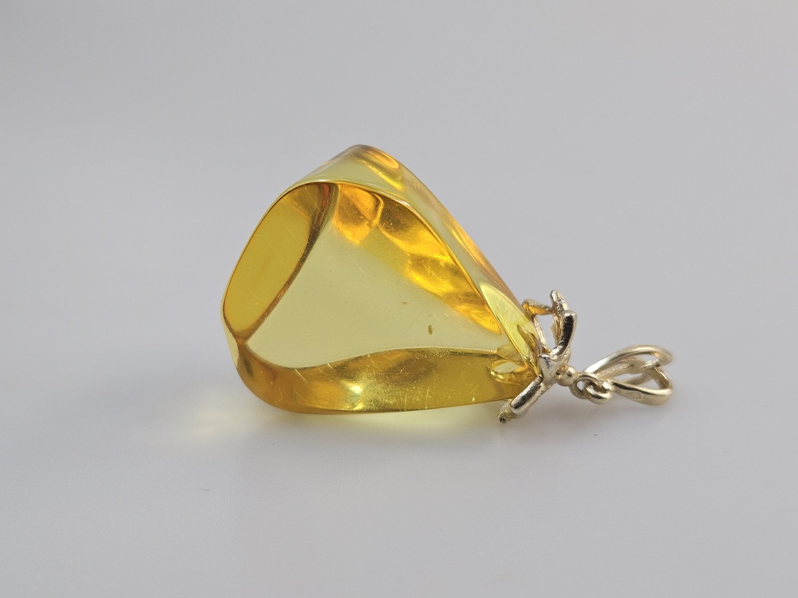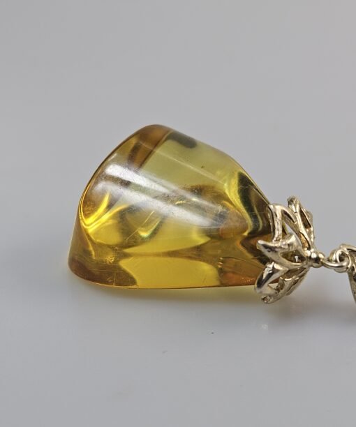 Gintaro pakabukas apdirbtas. Ilgis 4x3cm. 11,19 gr