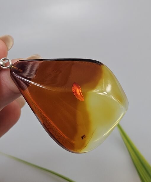 unikalus pakabukas su gintaru. Svoris 16,6 gr. dydis 5,5 x 4,1 cm. unikalus apdirbimo būdas.