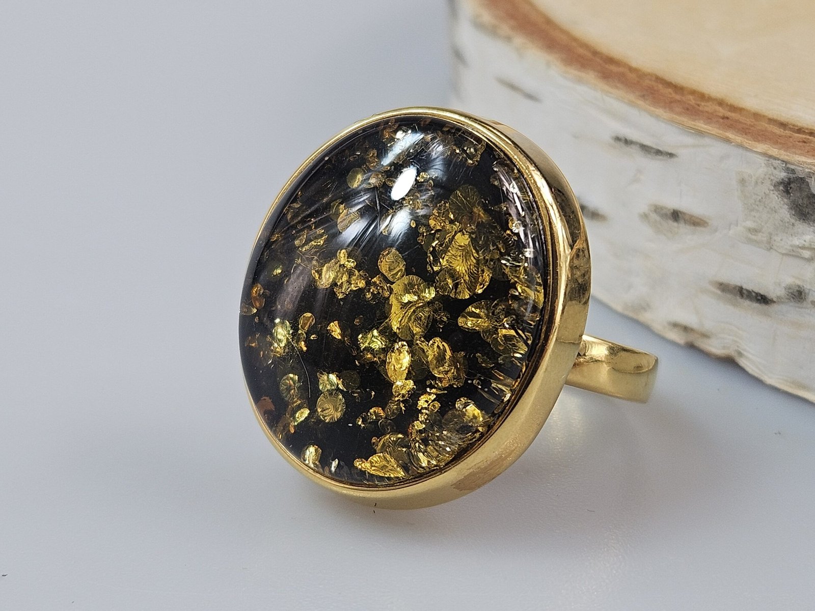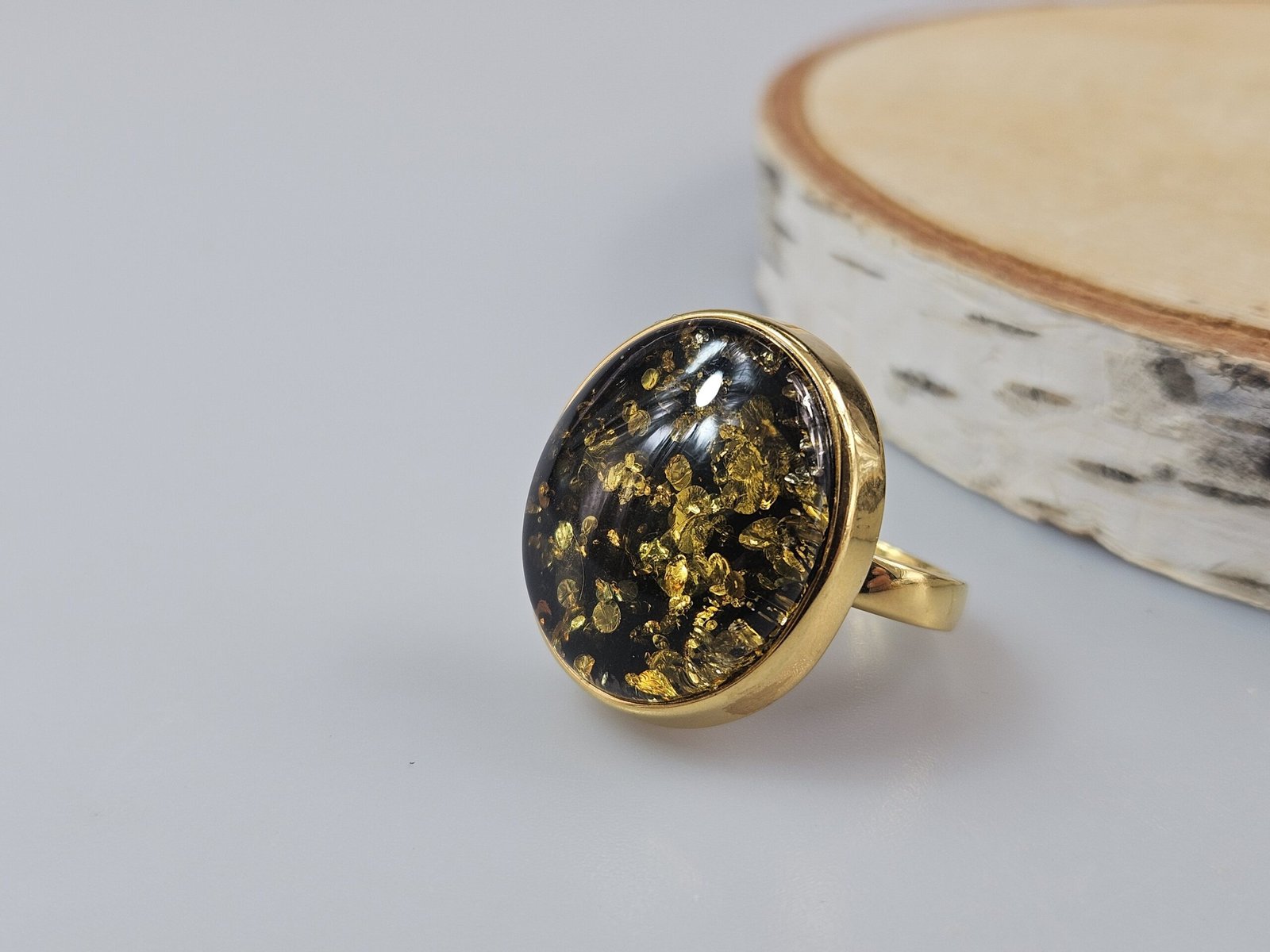 Žalias gintaras auksinis žiedas su žaliu gintaru Unikali dovana Jai.